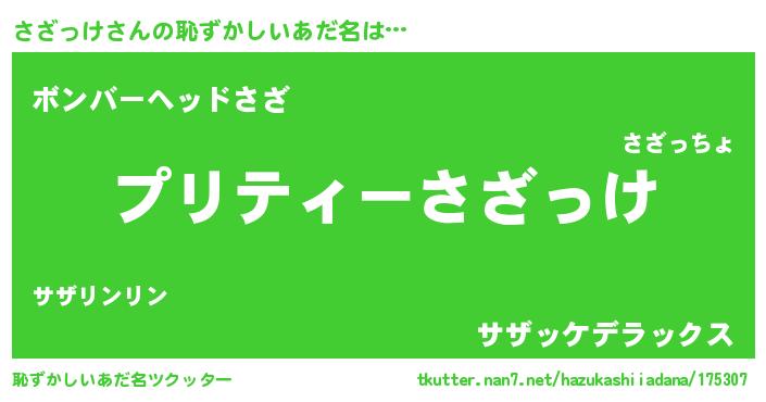 | ヒーロー風カッコイイあだ名 | 『スーパーサザッケ』『最強戦士サザッケ』 |
