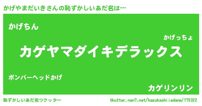 | 意味不明あだ名 | 『自称かげやまだいき』 |