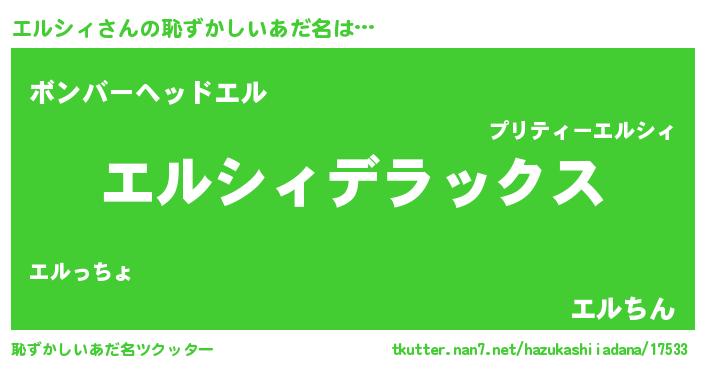 | ヘコむあだ名 | 『エルシィ(笑)』『エルにー』『牛乳』 |