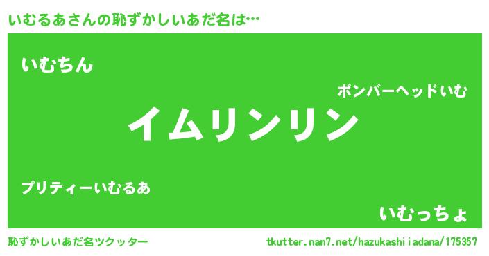 | 意味不明あだ名 | 『とにかく怪しいいむるあ』 |