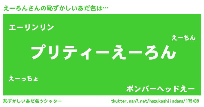 | 男性向けラノベタイトル風あだ名 | 『魔弾の王とえーろん』『えーろんの憂鬱』 |