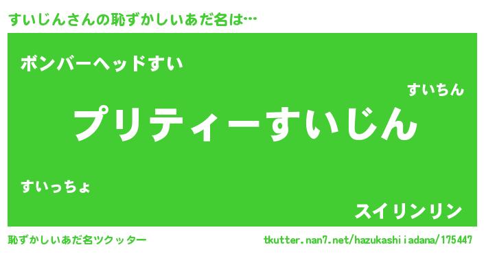 | 意味不明あだ名 | 『ペロリンすいじん』『永久保存すいじん』 |
