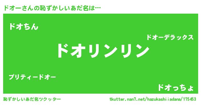 | 男性向けラノベタイトル風あだ名 | 『ドオーの嫁は女の子じゃないと思った?』 |