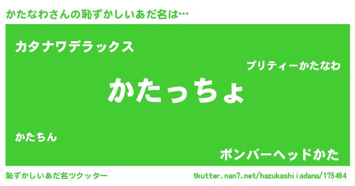| 男性向けラノベタイトル風あだ名 | 『緋弾のカタナワ』『かたなわの憂鬱』 |