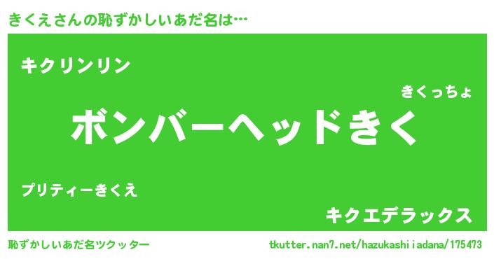 | ヒーロー風カッコイイあだ名 | 『天空の使者きくえ』『黄金騎士キク』 |