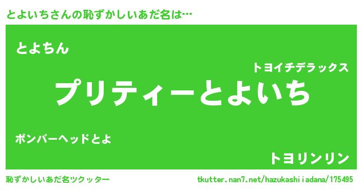 | 意味不明あだ名 | 『ペロリンとよいち』『永久保存とよいち』 |