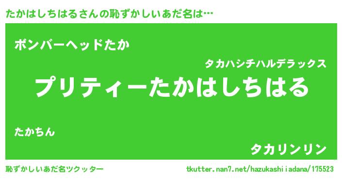| ヒーロー風カッコイイあだ名 | 『スーパータカハシチハル』 |