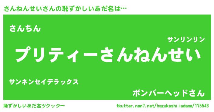 | ヘコむあだ名 | 『さんにゅー』『さんねんせい(震え声)』 |