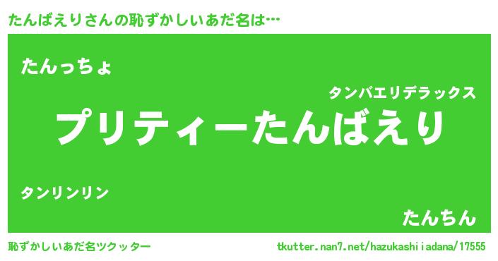 | 意味不明あだ名 | 『ペロリンたんばえり』『自称たんばえり』 |