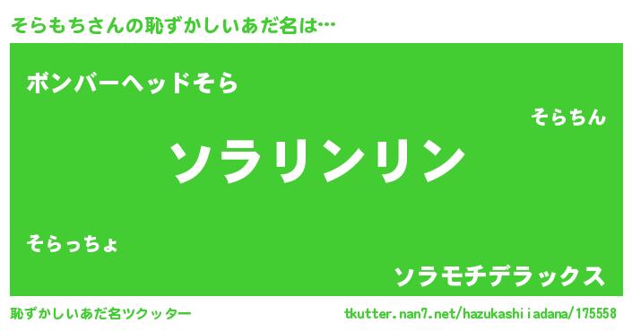 | ヘコむあだ名 | 『そらを』『そらもち(笑)』『豆乳』 |
