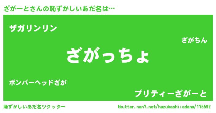 | 意味不明あだ名 | 『住所不定無職ざがーと(11歳)』 |