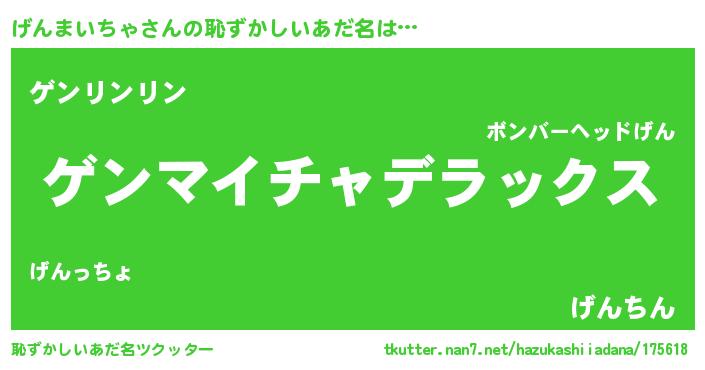 | 意味不明あだ名 | 『自称げんまいちゃ』 |