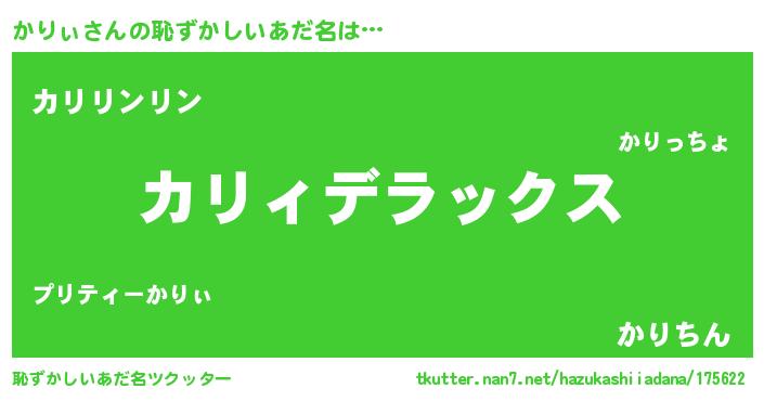 | 男性向けラノベタイトル風あだ名 | 『転生したらかりぃだった件』 |