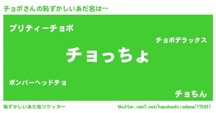 | 意味不明あだ名 | 『チョボフォーエバー』『ペロリンチョボ』 |