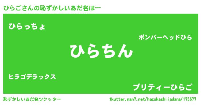 | 男性向けラノベタイトル風あだ名 | 『緋弾のヒラゴ』『はたらくひらごさま!』 |