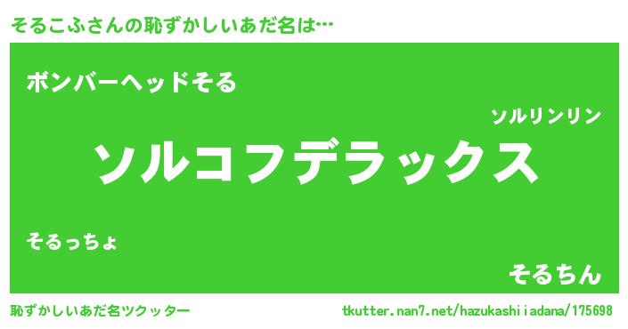 | ヘコむあだ名 | 『そるこふ(爆)』『そるっ子』『牛乳』 |