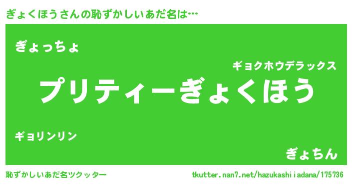 | 意味不明あだ名 | 『ペロリンぎょくほう』『自称ぎょくほう』 |