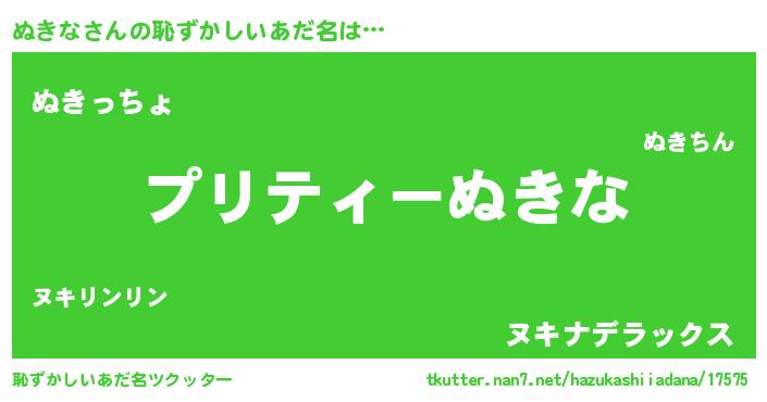 | ヘコむあだ名 | 『ぬきもー』『豆乳』『ぬきな(爆)』 |
