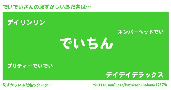 | 意味不明あだ名 | 『永久保存でいでい』『自称でいでい』 |