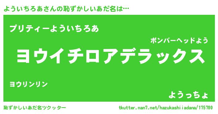| 男性向けラノベタイトル風あだ名 | 『よういちろあに滅ぼされるだけの簡単なお仕事です』 |