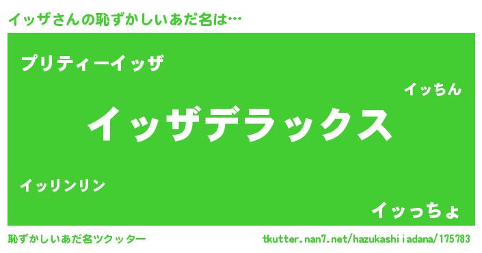 | 男性向けラノベタイトル風あだ名 | 『Re:イッザから始める異世界生活』 |