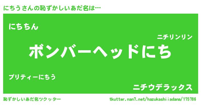 | ヘコむあだ名 | 『にちう(遠い目)』『にちぷりん』 |