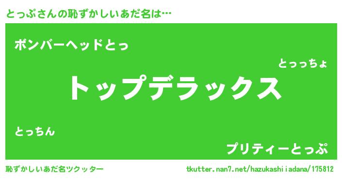 | 意味不明あだ名 | 『自称とっぷ』『眠気覚ましガムとっぷ味』 |