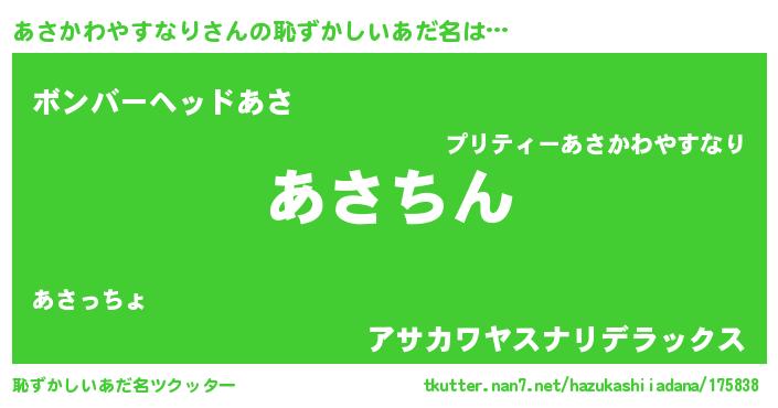 | ヒーロー風カッコイイあだ名 | 『ネオアサカワヤスナリ』『仮面アサダー』 |