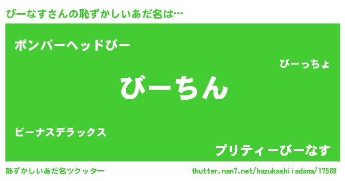 | ヘコむあだ名 | 『びーなす(爆)』『びーにー』 |
