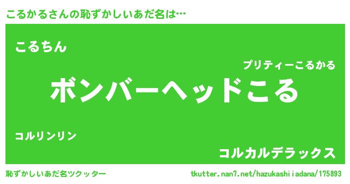 | 可愛いあだ名 | 『こるちゅっちゅ』『こるかるママ』 |
