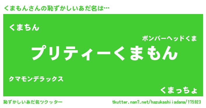 | ヘコむあだ名 | 『くまにゅー』『くまもん(笑)』 |