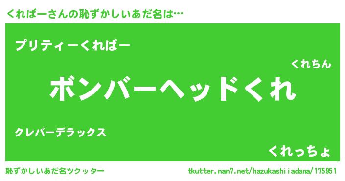 | ヒーロー風カッコイイあだ名 | 『慈愛の使者くればー』『ネオクレバー』 |