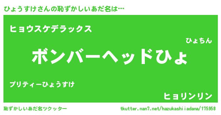 | ヘコむあだ名 | 『ひょぷりん』『ひょうすけ(笑)』 |