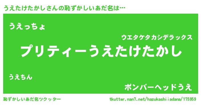| ヒーロー風カッコイイあだ名 | 『スーパーウエタケタカシ』 |
