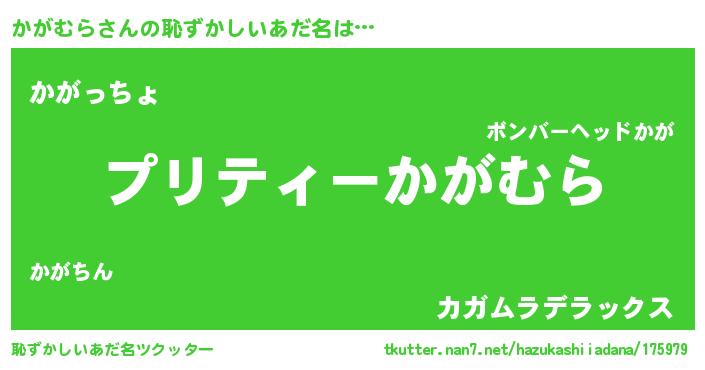 | ヒーロー風カッコイイあだ名 | 『スーパーカガムラ』『仮面カガダー』 |