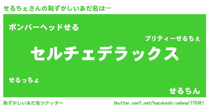 | ヘコむあだ名 | 『せるちぇ(遠い目)』『せるにゅー』 |