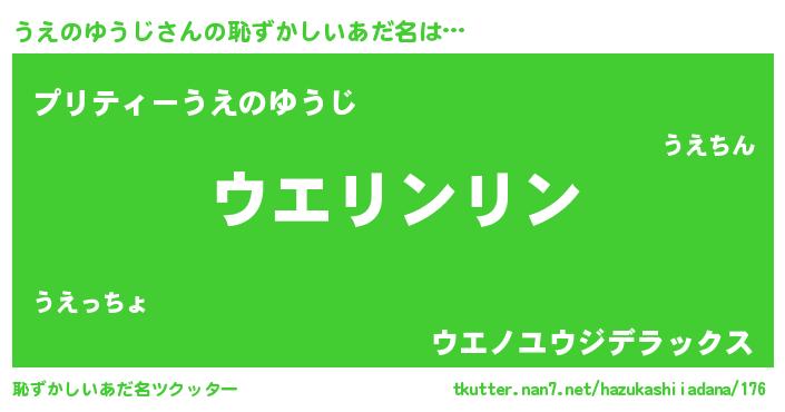 | ポケモン風あだ名 | 『ヒウエノユウジ』『ウエチュウ』 |