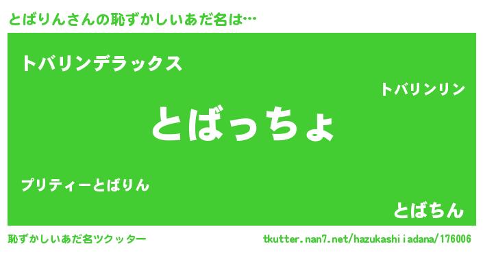 | 意味不明あだ名 | 『とばりんフォーエバー』『自称とばりん』 |