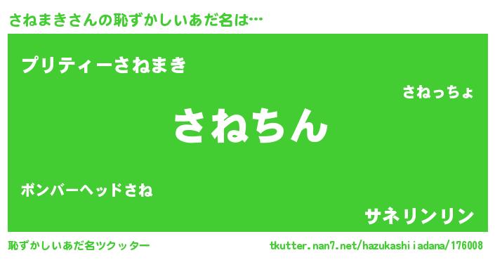 | ヘコむあだ名 | 『さねまき(小並感)』『さねにゅー』 |