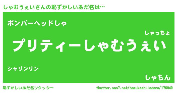 | ヘコむあだ名 | 『しゃふぇ~』『しゃむうぇい(遠い目)』 |