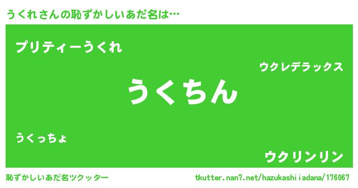 | 男性向けラノベタイトル風あだ名 | 『うくれという概念が存在しない退屈な世界 』 |