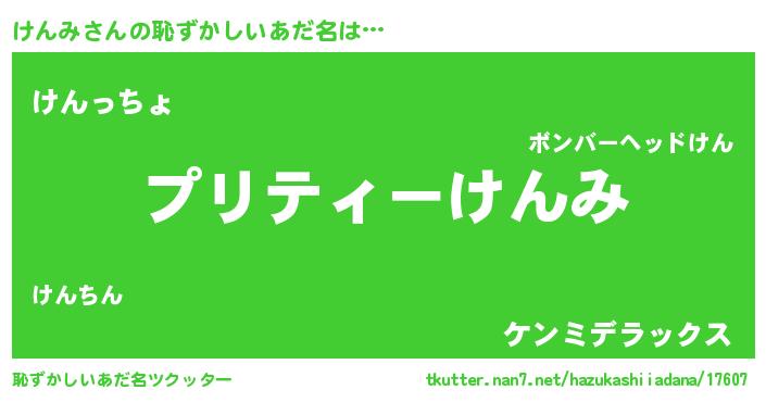 | ヘコむあだ名 | 『けんにー』『豆乳』『けんっ子』 |
