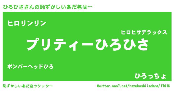 | 男性向けラノベタイトル風あだ名 | 『この素晴らしい世界にひろひさを!』 |