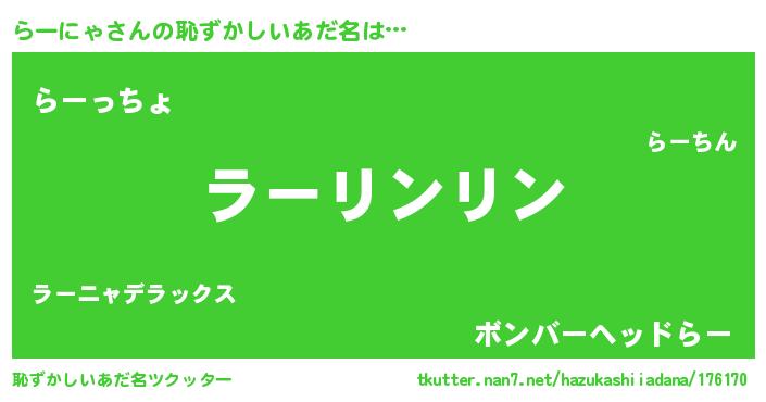 | ヒーロー風カッコイイあだ名 | 『炎刃騎士ラー』『ウルトラらーにゃマン』 |
