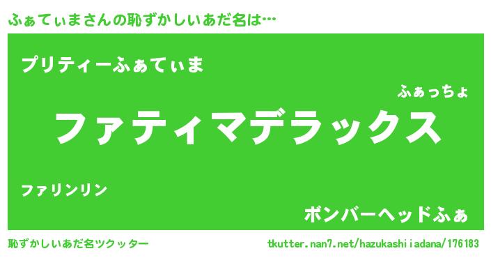 | 意味不明あだ名 | 『自称ふぁてぃま』『ペロリンふぁてぃま』 |