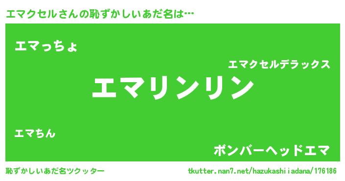 | 意味不明あだ名 | 『とにかく怪しいエマクセル』 |