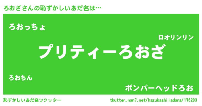 | 欧米人風あだ名 | 『マイケルろおざ』『ダレノガレろおざ』 |