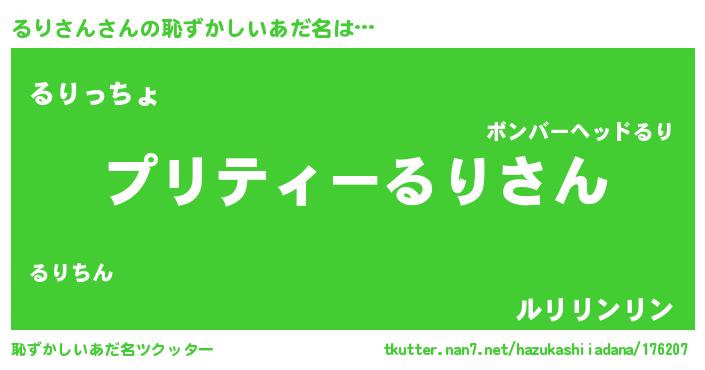 | ヘコむあだ名 | 『るりっふぃ~』『なまこ酢』 |