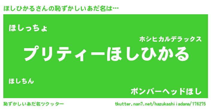 | ヘコむあだ名 | 『ほしっふぃ~』『豆乳』『ほしを』 |