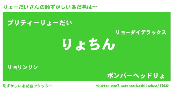 | ヘコむあだ名 | 『りょーだい(笑)』『りょにゅー』 |